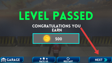 2当顺利完成当前关卡的挑战后,游戏画面会呈现关卡通过的提示信息,此时点击进入下一关的按钮,即可开启新的挑战,并且能得到五百个金币作为奖励。