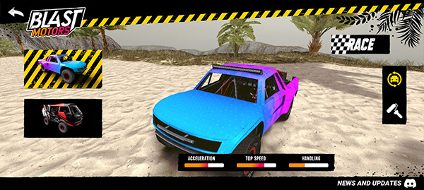 2、点击第一行的“to game”按钮,即可进入车辆的选择与改装界面。在该界面中,玩家可借助油刷工具对车辆的颜色进行调整和变换。