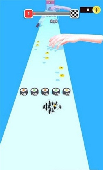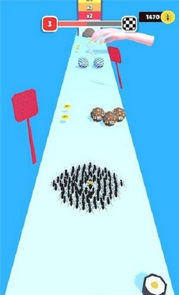 2赛道上的危险陷阱越来越多,得移动蚂蚁堆躲开杀虫剂、刀具、手掌或者蚊子拍之类的东西,另外还要收集路上的食物,让蚂蚁群的数量变多。