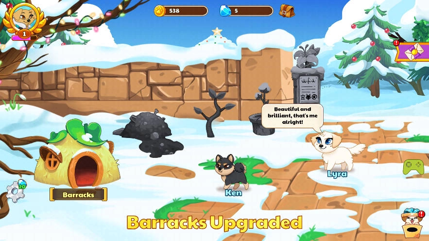 3、解锁超过45种狗狗英雄,通过战斗和进化提升技能,打造独一无二的冒险团队。
