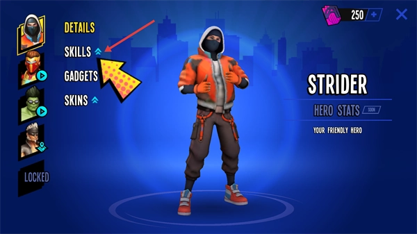 2、点击左侧的【SKILLS】选项,即可进入该英雄的技能配置界面。