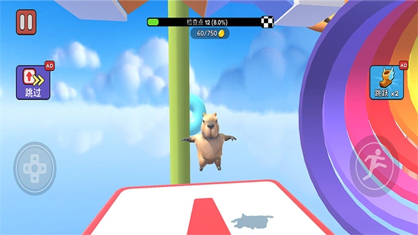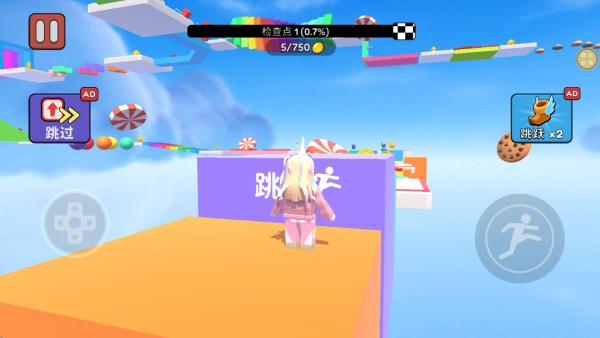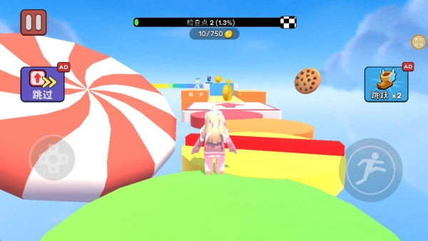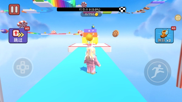 1、进入游戏后选择你的角色,开始在彩虹般的赛道上挑战自我。赛道中充满了各种障碍,考验你的反应速度。