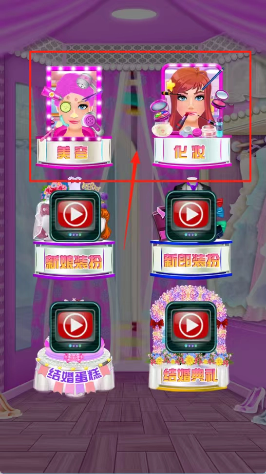 3、先点击左侧美容按钮为角色做基础护肤,护肤流程结束后,再点击右侧化妆按钮进入打扮环节。
