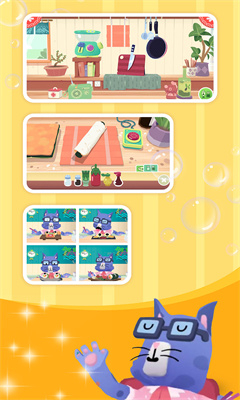 米加世界迷你厨房游戏 这是一款卡通风格的美食制作类游戏,游戏里有超多可爱的3D动物担任厨房小帮手,它们能协助我们准备食材、制作美味佳肴;同时,我们还可以装扮厨房,让它变得更美观。