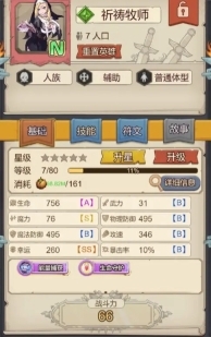 祈祷牧师是游戏里少见的低品阶治疗与属性增益兼备的角色。她的普攻“治疗祈祷”能治愈范围内生命值最低的队友,可有效避免己方队伍过早减员;能量技能“守护祝福”则能量消耗少、释放速度快,还能为目标增加双抗。在游戏前期,这一百点双抗的提升,无论是对前排坦克的坦度,还是后排脆皮的生存能力,都有着显著的增强效果。