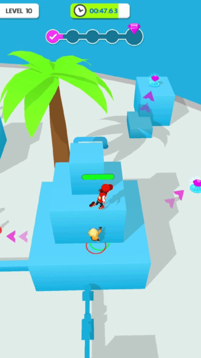 《终极竞速赛》是一款极具趣味性的跑酷闯关游戏。它拥有清新的画风、简约的图形设计,以及丰富多样的主题背景。玩家需要挑战不同难度的关卡,玩法十分简单:只需点击手机屏幕,就能操控角色完成上下左右的跳跃动作,还能触发速度冲刺技能。游戏的核心目标是在最短时间内收集所有钻石,顺利完成任务,从而解锁更多全新挑战。