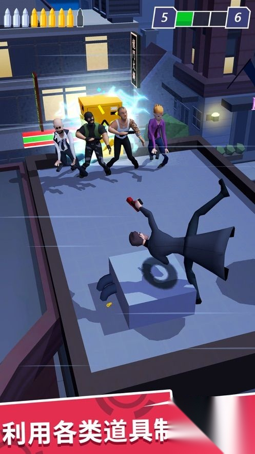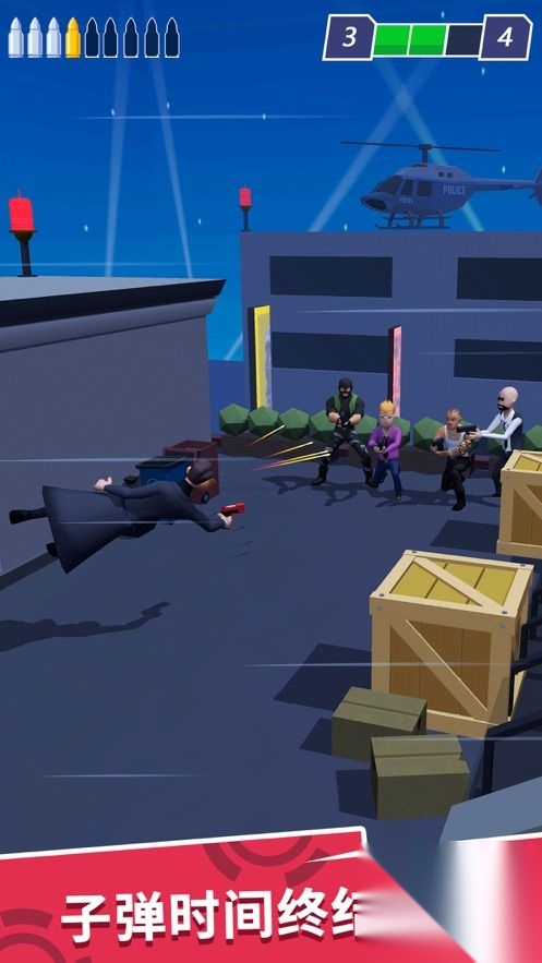 2在空中跳跃翻滚的瞬间,倾泻出大量子弹,一口气解决掉更多敌人。