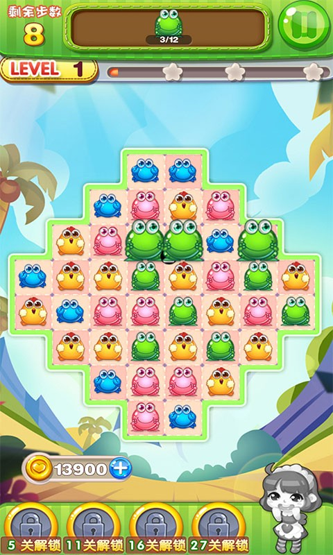 绿豆蛙消消乐是一款休闲娱乐类手机游戏,在这款游戏里,玩家能够体验到别具一格的消除玩法,游戏画面简洁明快,操作方式简单易上手,而且还带有一定的挑战性呢!