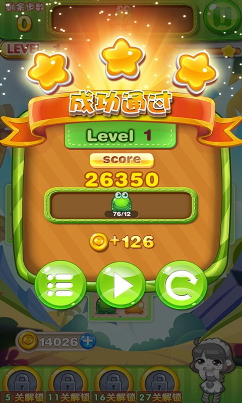 3、若能在规定步数内达成指定的消除任务,就可以进入下一个关卡。