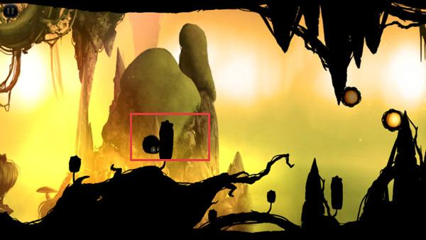 2、图中眨巴着眼睛的小黑球就是我们这场森林冒险忠实的小伙伴了,点击屏幕后,整个画面就会匀速后退。