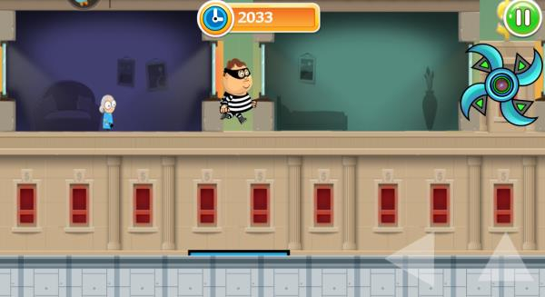 2、整个过程惊险刺激,老爸既要摆脱警察的追捕,又得避开形形色色的陷阱,途中还得收集各类金币与道具。