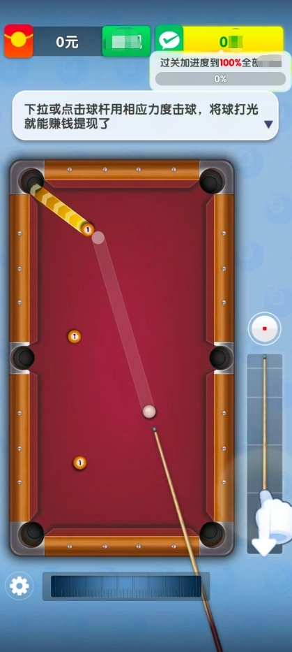 2、台球游戏需要手感,多在关卡模式中练习,熟悉不同角度和力度的击球效果。