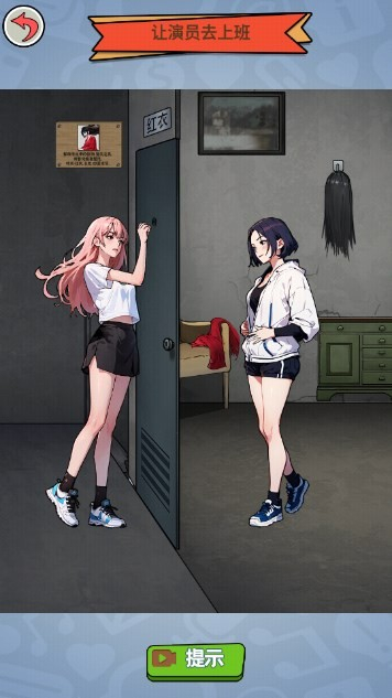 1、穿上沙发上的【红衣服】,向左滑动柜门后戴上【面具】,再戴上【假发】。