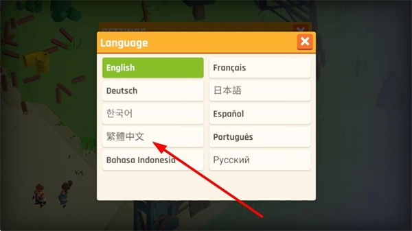 4、在语言列表里,找到繁体中文选项并点击选择,系统会自动应用该语言设置,游戏内容将切换为中文显示。