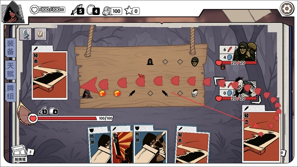 进入游戏战斗界面后,你可以借助轻击、重击、防御这类卡牌来开展战斗操作,界面上会呈现敌方状态、抽牌堆以及弃牌堆的信息,你需要通过使用卡牌来推动战斗向前进行。