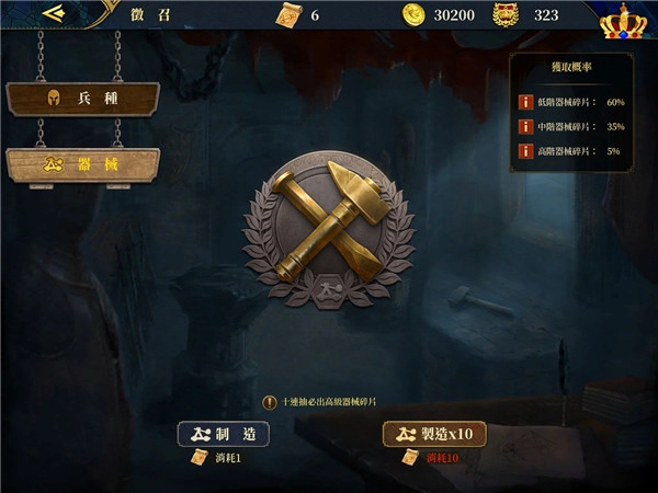 关于兵种升级,每个兵种需集齐30个碎片方可解锁,解锁之后进行升级时,还需消耗相应数量的碎片。另外,关于装备碎片及其升级机制如下:
