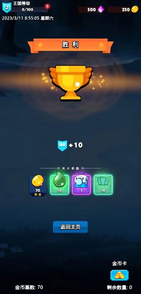 继续挑战关卡直到达到200级,解锁神之祭坛的功能。把所有绿卡和蓝卡都进行合成操作,紫卡仅留下祭祀类型的,剩下的全部合成。使用钻石购买金币卡,不要用钻石去抽卡。