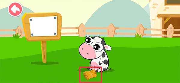 二、进入后点击稻草,奶牛吃掉稻草长大,数字板上就会显示数字1。