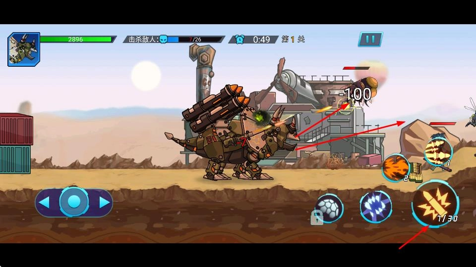 战斗时可借助机甲恐龙的近战或远程攻击手段,来应对不同类型的敌人,以此持续提高战斗效率。