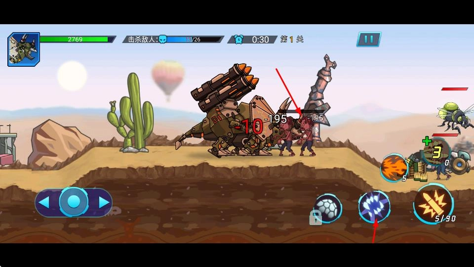 进入游戏关卡后,借助左侧方向键操控机甲恐龙移动,通过灵活调整位置靠近敌人,以此为战斗营造有利局势。