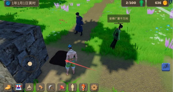 玩家可借助虚拟摇杆操控角色移动,当角色靠近NPC时会触发互动机制,进而获取任务详情或资源相关信息,以此来推进游戏的整体进程。