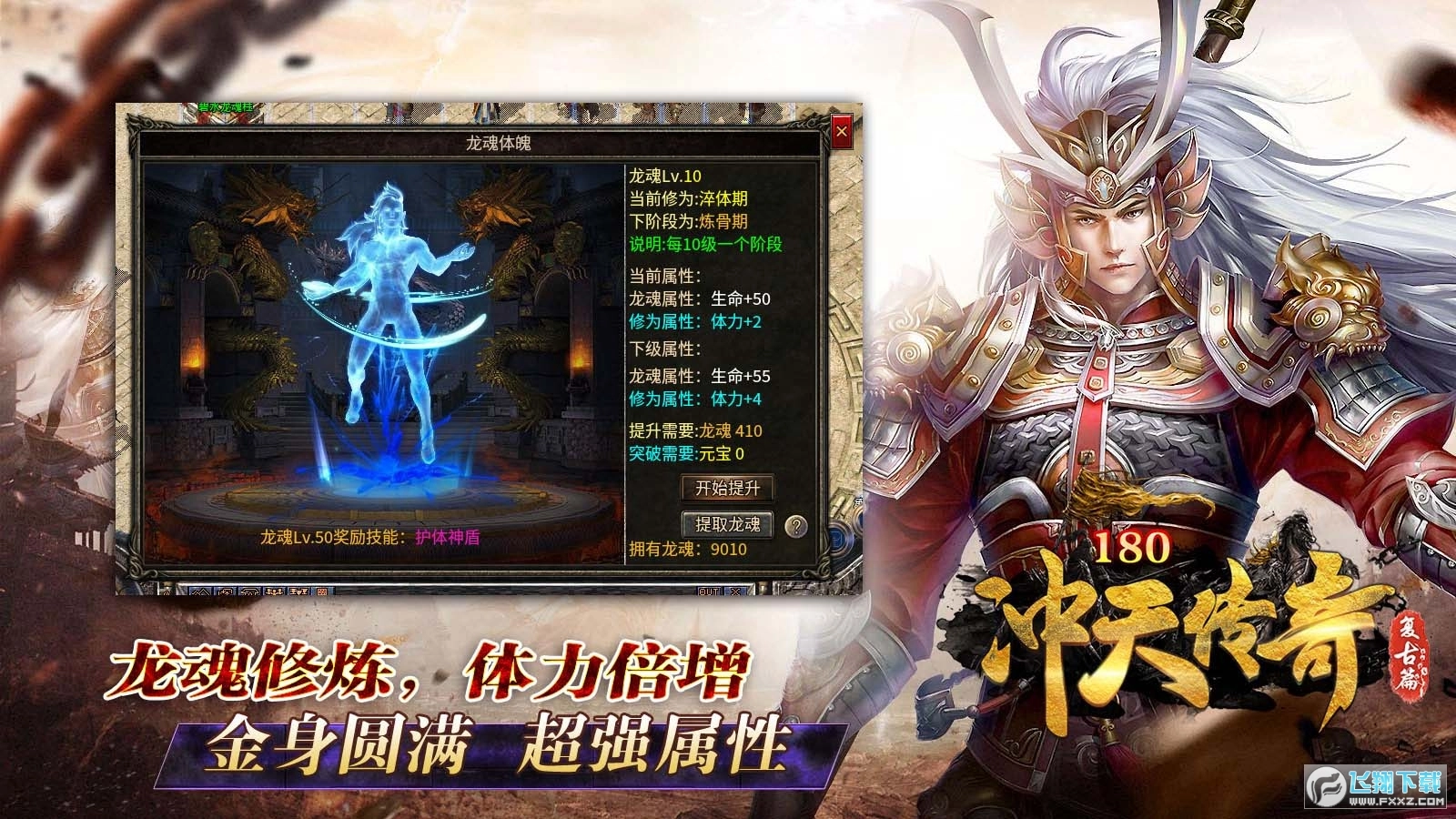炼体系统:借助龙魂开展修炼,炼体能够强化体质,使生命值得到大幅提升(每级都会提升基础生命值,突破10级还会额外增加百分比体力值),具体详情可进入游戏查看。