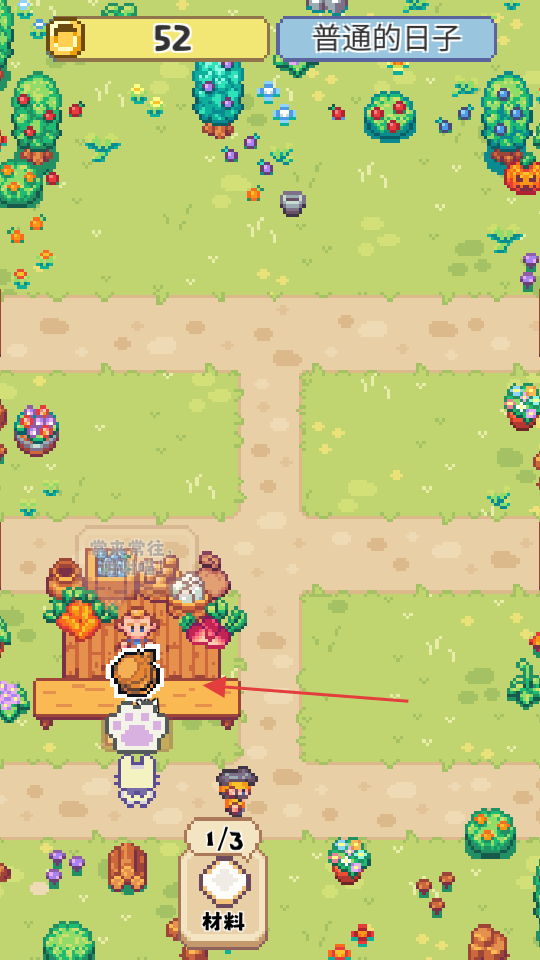 市场场景中,与摊位NPC互动,收集材料推进经营。