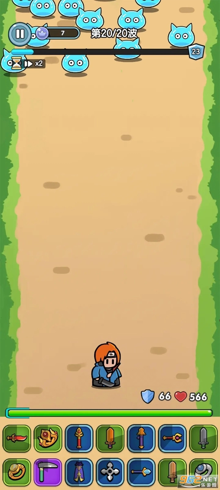 英雄塔防的玩法和最强堡垒有些相似,采用竖屏设计。不同的是,这里只有英雄独自作战,他既是防御的炮塔,同时也是敌人要攻击的目标。当敌人进入英雄的攻击范围时,英雄会自动发起攻击,而输出伤害主要依赖背包里的物品——每一件武器都对应着一个攻击技能,并且有各自的冷却时间(CD)。武器有着不同的格子占用需求,共分为五个等级,还能通过二合一的方式进行升级。值得一提的是,每个不同级别的武器都可视为独立的攻击单位,只要背包容量足够,仅使用单一种类的武器来完成关卡挑战也是可行的。