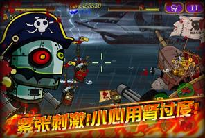 游戏既然以僵尸和海盗为主题,战斗地点自然就设定在海上了。为了契合故事的黑暗基调,整片大海都被一层浓墨般的乌云所笼罩,仿佛一场暴风雨随时都可能骤然降临。这款游戏采用了2D横版的画面呈现方式,我们将以第一人称视角开启战斗之旅。尽管僵尸的外形看起来并不恐怖,反倒带着几分搞笑的意味,但面对成群结队前来抢夺金币的僵尸时,还是会让人有些心惊胆战。此时绝不能有丝毫怜悯,只需扣动手中的武器,尽情地展开杀戮即可。
