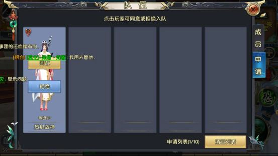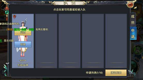 当你创建好一支队伍后,其他游戏玩家能够搜索到你的队伍,并提交加入申请。接下来就轮到你行使权限了:选择同意或是拒绝这些申请。