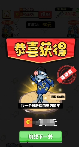 每通过一个关卡,就能解锁随机的咸鱼图鉴;把所有咸鱼图鉴都点亮,完成对应的成就任务,就能拿到超多红包奖励。