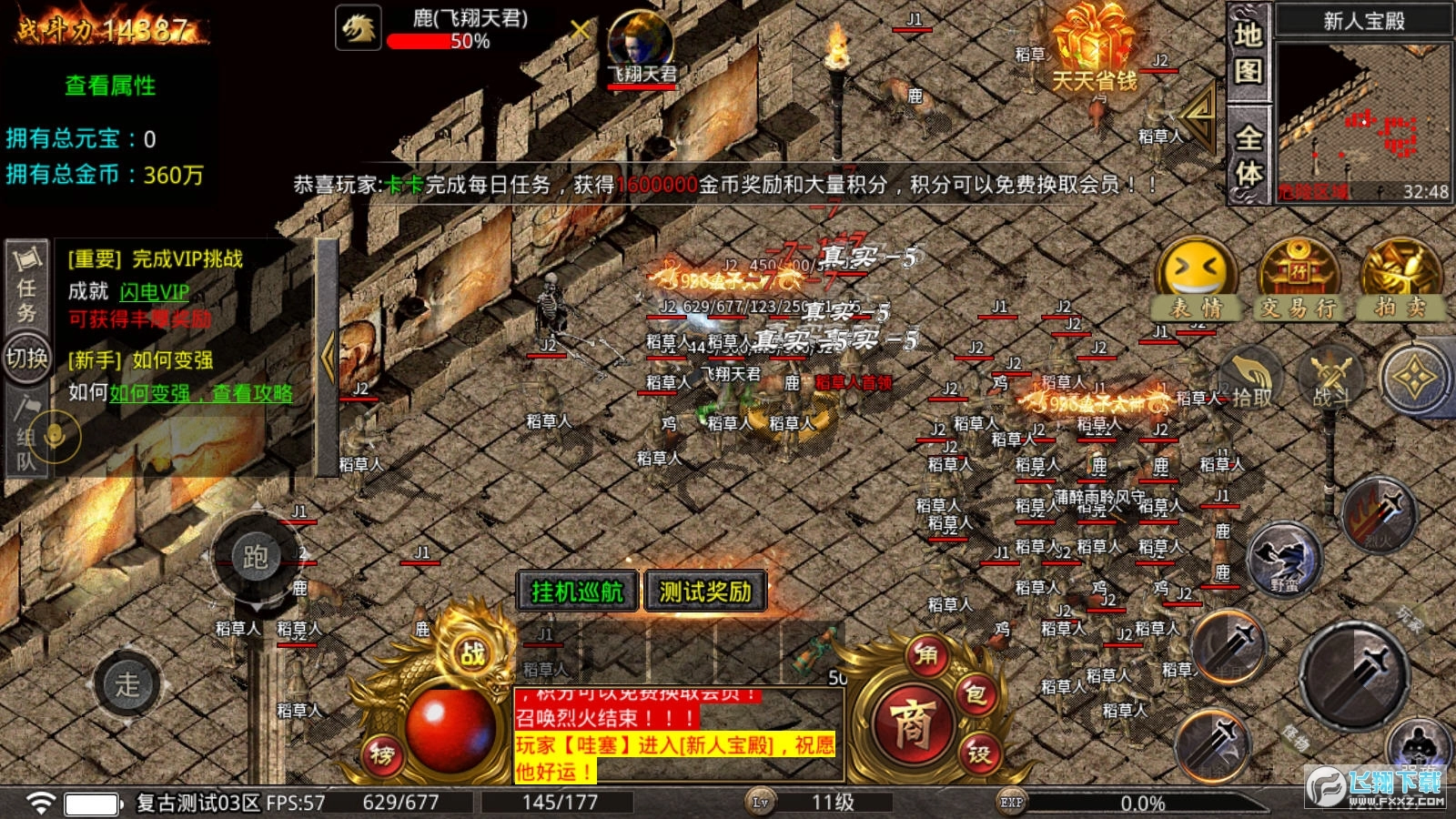 所有地图都是满屏怪物,自动释放火墙技能,每一刀都能全屏切割,帮你快速完成收割任务