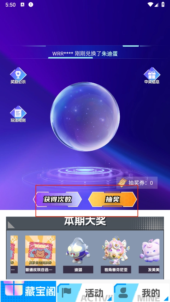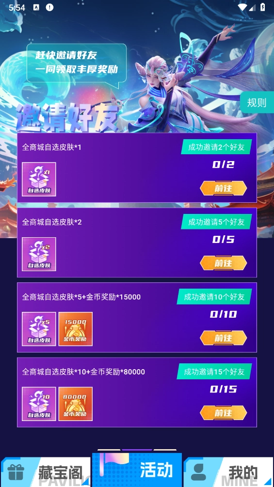 2、今日"藏宝阁"参与抽奖就能获得皮肤。
