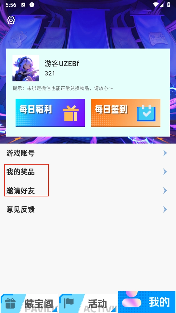 5、最后进入“我的”板块,就能查看自己的奖品以及邀请过的好友。