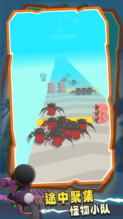 轻松的跑酷玩法中,各类蜘蛛车都可通过合并的方式进化为新形态。