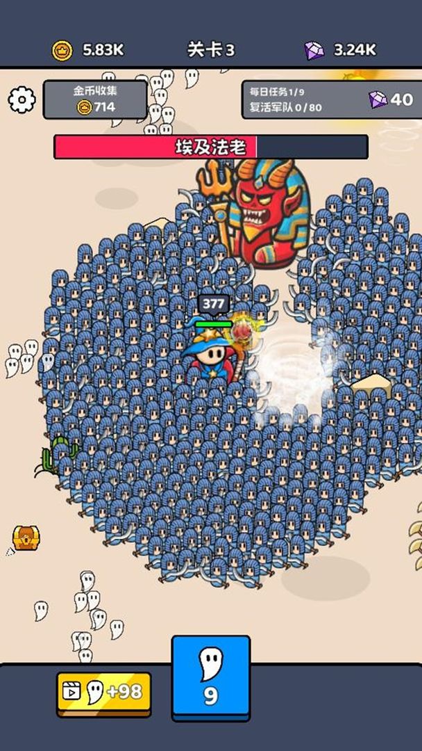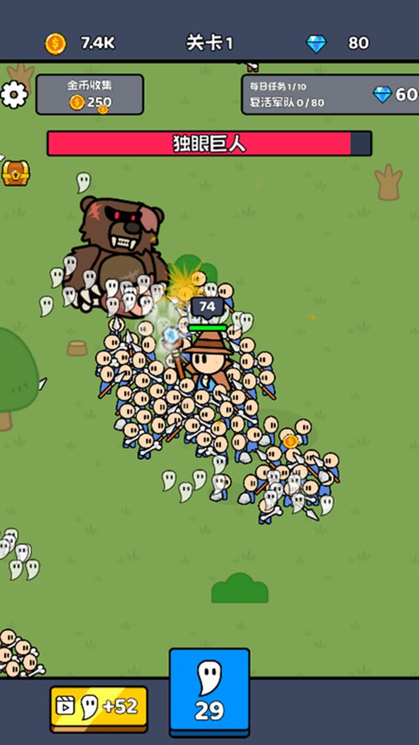 组建军队:玩家可借助收集到的资源召唤战士。各类战士具备不同的能力与特点,合理搭配是制胜的关键。