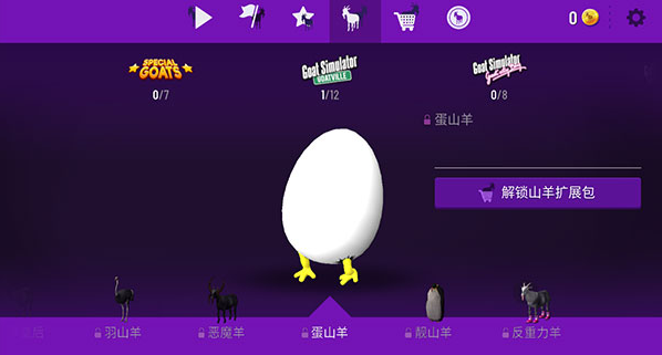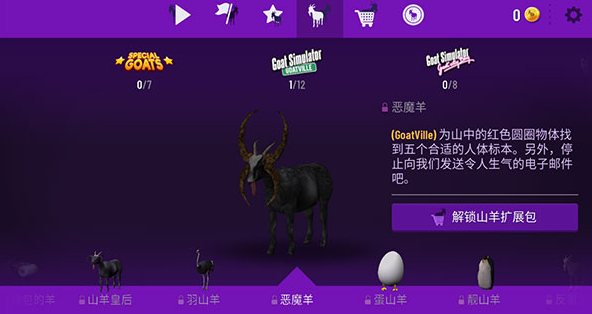 2、完成游戏设定的任务能够获取得分,这些得分可用于解锁各类不同的山羊角色。