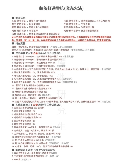 装备堪称重中之重,洗出完美的装备词条,能让你的伤害提升十几倍,绝非夸张。因此,我历经九九八十一天,制作了以下这份激光火法的装备打造指南,供大家参考。