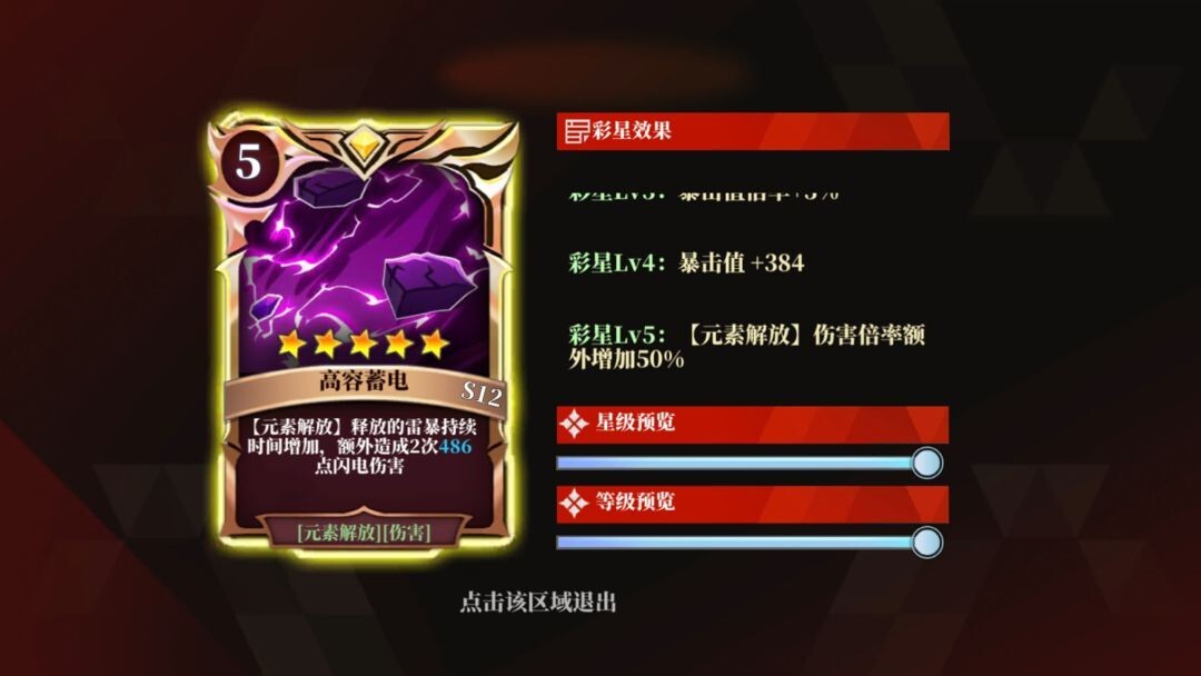 【高容蓄电】此卡的五星效果为让【元素解放】的伤害倍率额外提升50% ,这张卡的价值不言而喻。要是你的这张卡是五彩星,建议从上述卡牌中卸下一张,换上此卡。然而,要是这张卡并非五彩星,那就千万别带!!