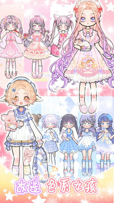 游戏画面采用清新可爱的风格设计,各式各样姿态娇俏的女孩形象都能任你自由切换。