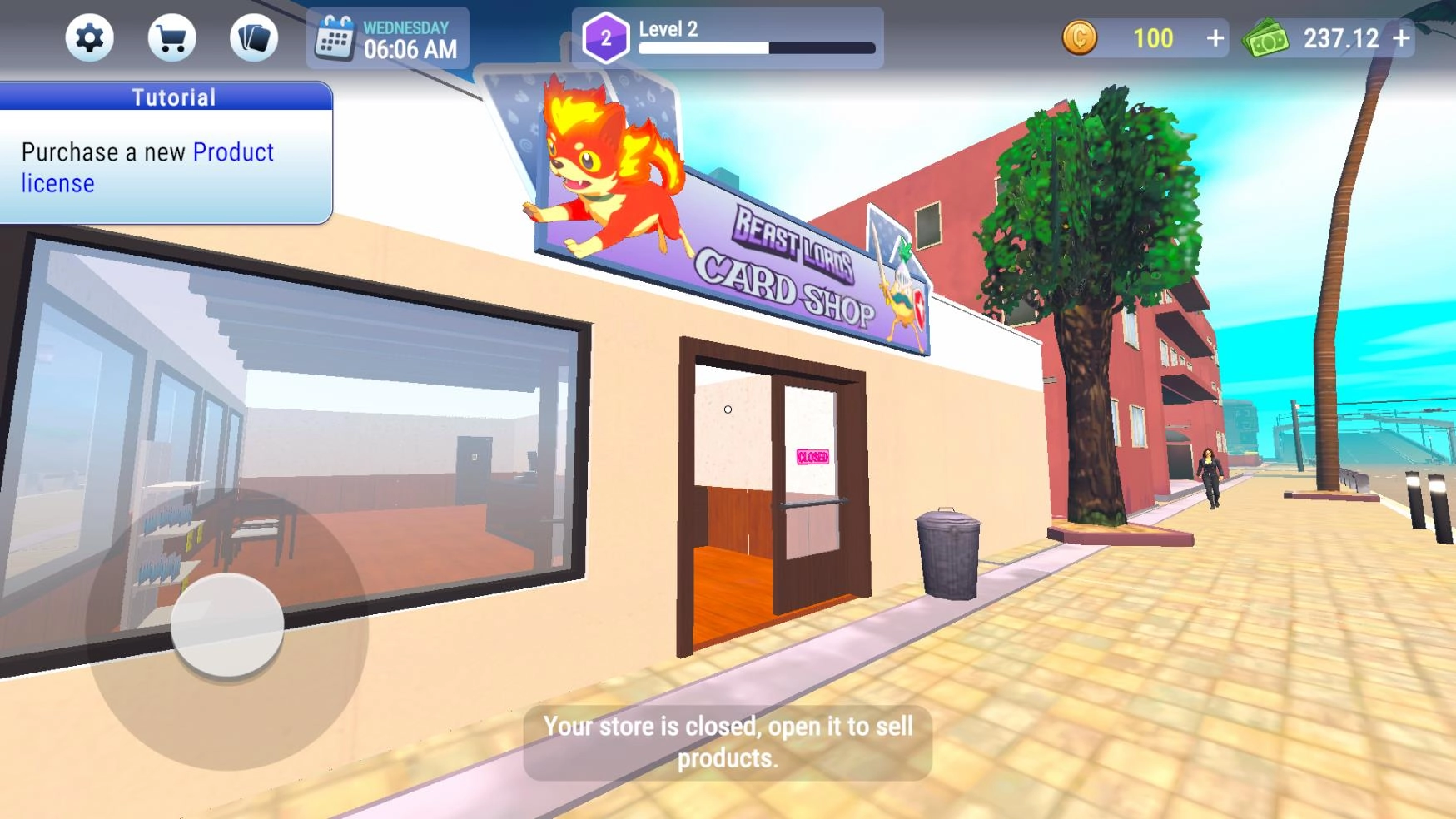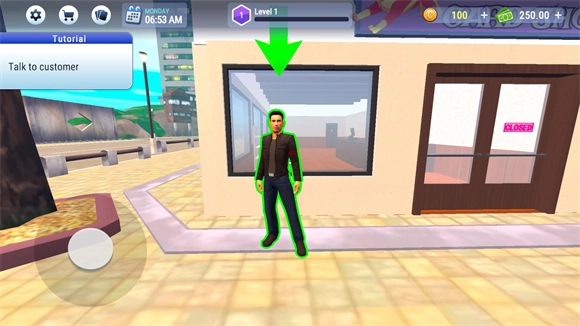 2、进入游戏后点击店铺的closed开始营业。