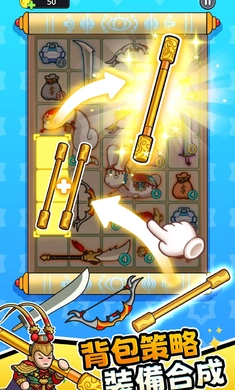 2、背包管理策略:游戏引入了背包管理的概念,玩家需要在有限的背包空间内做出策略性的摆放选择,以最大化战斗属性并召唤出最强的英雄阵容。