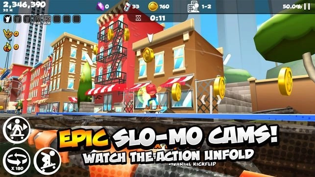 解锁全部物品,闯过所有关卡,成为下一个滑板传奇。