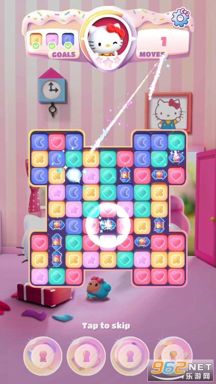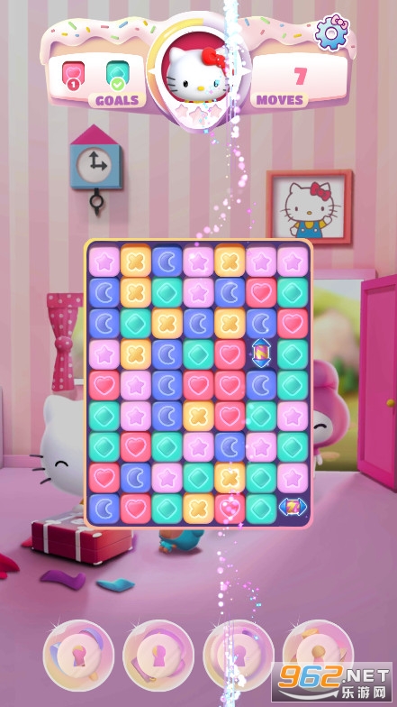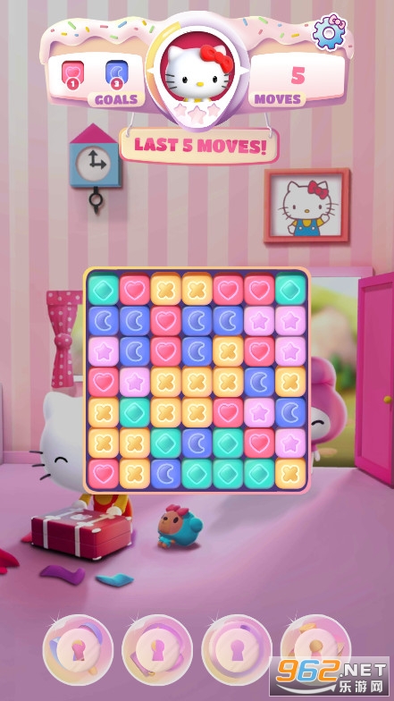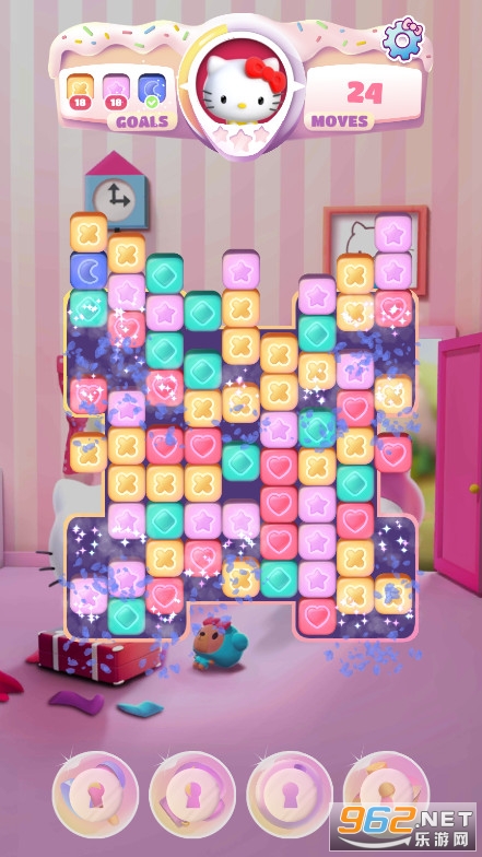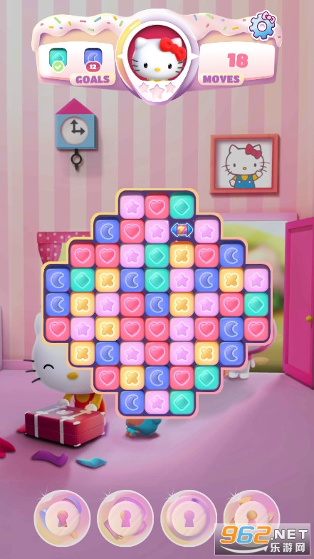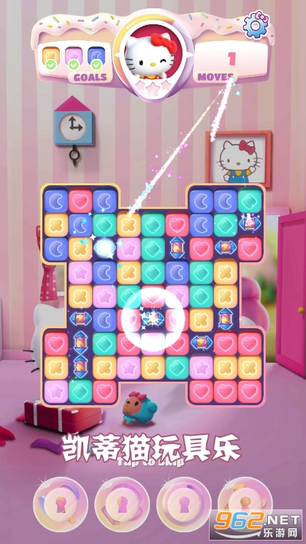 ,玩家在游戏里通过完成消除任务获取道具与装饰品,能和凯蒂猫们一同游玩,挑战高难度的消除关卡,感兴趣的话就来体验一下吧。《凯蒂猫玩具乐最新版》是一款十分经典的三消闯关游戏,以凯蒂猫为主题,无论是孩子还是女生都会对它青睐有加。在游戏中,你需要连接相同的图案进行消除来获取分数,以此完成各项挑战。商店内还出售着各式各样的丰富道具,能帮助你更轻松地攻克难关。此外,你还可以解锁更多有趣的模式,在不同的规则设定下完成相应任务。这是一场对眼、手、脑的综合考验,你有信心应对吗?现在就来亲自体验一番吧!