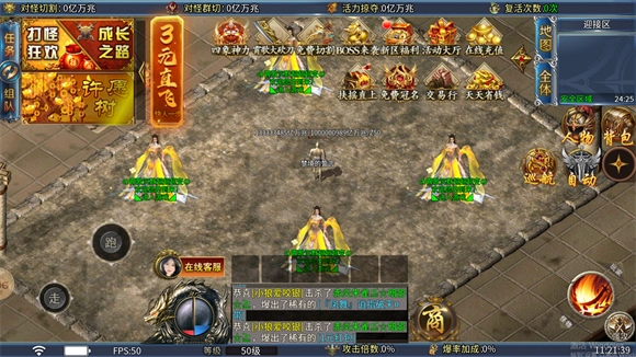 5、激活沙捐“爱心大使”后,每秒能对怪物造成10点伤害,打怪轻松如切菜,同时还可掌握“十步一杀”这一PK神技