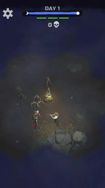 5、夜幕降临后,丧尸会发起进攻,此时人物将自动进行射击。