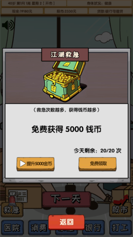 3、玩家要协助小王挺过失业的阶段,凭借一开始仅有的少量资金,把他从普通人打造成一名成功的企业家。