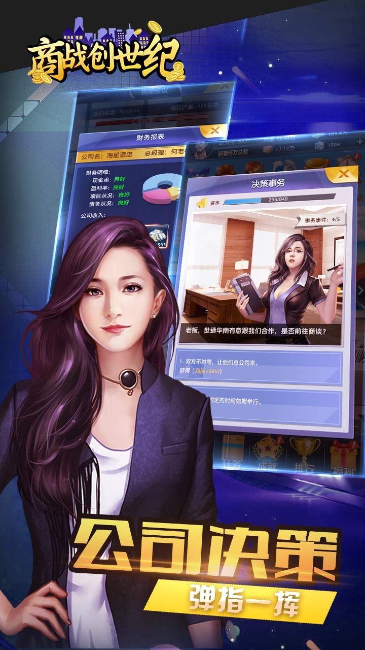 《商战创世纪》,一款主打商战玩法的模拟游戏。你是否渴望感受当 CEO 的独特滋味?在这里,你的商业大亨梦想将不再遥远,轻松得以实现。不仅如此,你还能邂逅各种奇妙的经历,亲手培养专属秘书,达成爱情与事业的双丰收!