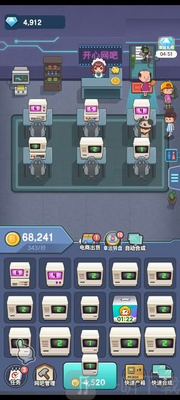 持续对电脑进行升级,吸引更多顾客光顾自己的网吧。当收益足够丰厚时,便可扩大网吧规模。而且游戏操作简单,容易上手,能让玩家尽情享受乐趣,自由自在地在此玩耍。