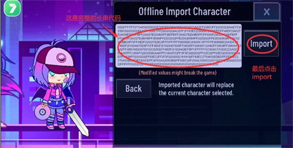 3、框内随即会出现一长串代码,只有这么长的代码才是完整的,最后点击“Import”按钮,就能用上他人分享的人设了!